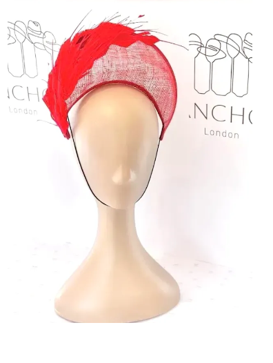 Blush pink cocktail hat with a sculpted peony and curled ribbon trim—whimsical, fresh, and full of charm.